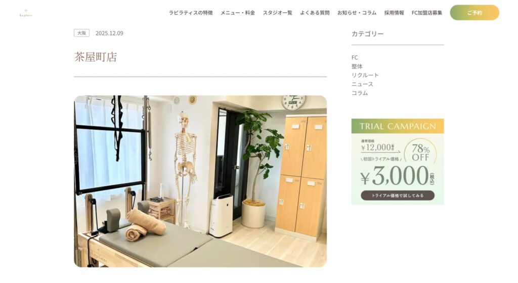La pilatesは整体とピラティスを組み合わせた女性専用パーソナルスタジオです。