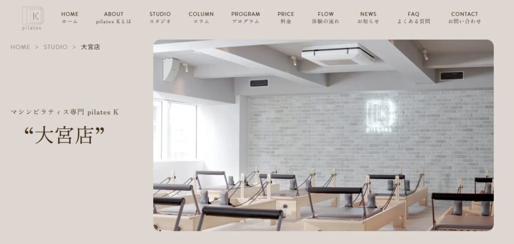 ピラティスK 大宮店は、大宮駅から徒歩3分の女性専用マシンピラティススタジオです。