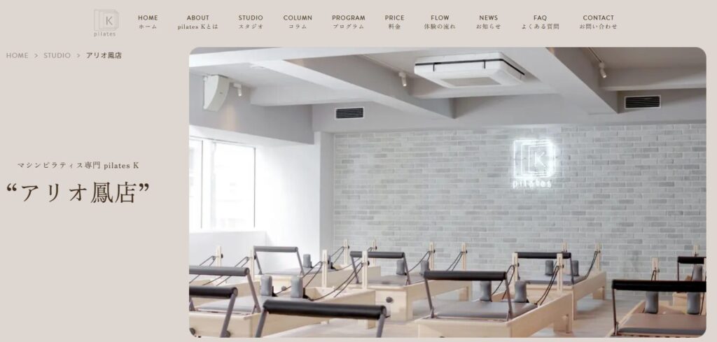 ピラティスK アリオ鳳店は、アリオ鳳2階にある女性専用のマシンピラティススタジオです。