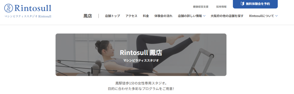 Rintosull 鳳店は、鳳駅徒歩1分の場所にある女性専用のマシンピラティススタジオです。