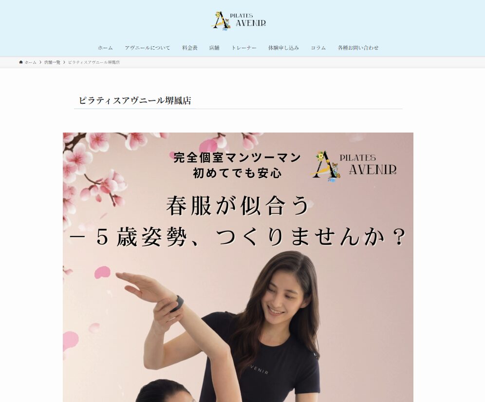 ピラティスアヴニール堺/鳳店は、鳳駅近くにある完全個室のマシンピラティススタジオです。