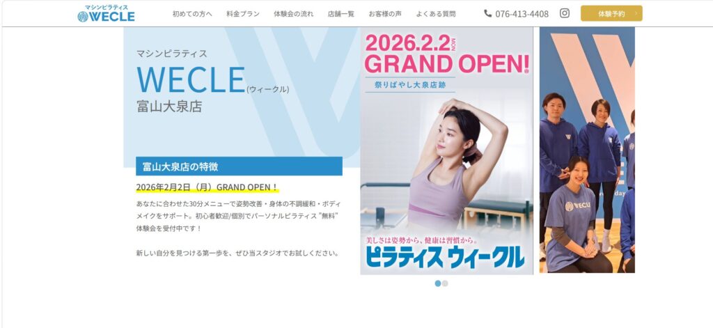 WECLEは、サーキット型ピラティス”を導入した「予約不要」「着替え不要」「通い放題」のマシンピラティススタジオです。